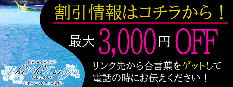 ▶90分コース(指名料1,000円込) 19,000円→17,000円 2,000円OFF ▶120分コース(指名料1,000円込) 25,000円→22,000円 3,000円OFF 合言葉は「新人割」! ご予約時に「新人割」とお申出ください。 ※対象の新人に限ります。 ※ご来店後のお申出には対応できません。 ※他イベントとの併用は出来ません。 ※リピート指名(本指名)は除きます。